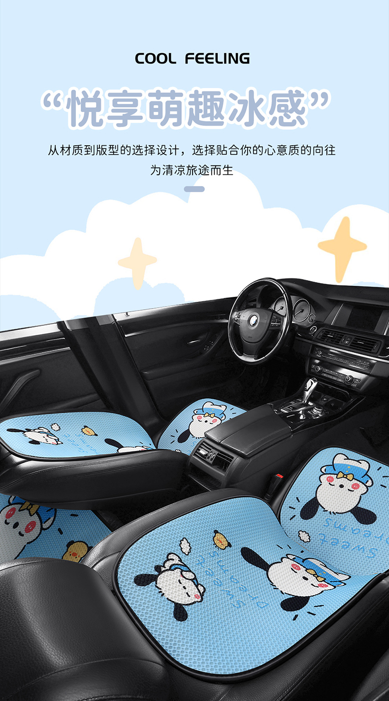 汽车坐垫四季通用卡通透气单片夏季凉垫座椅套冰丝防滑后排三件套