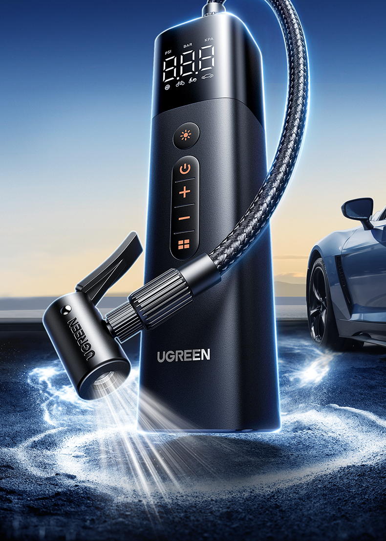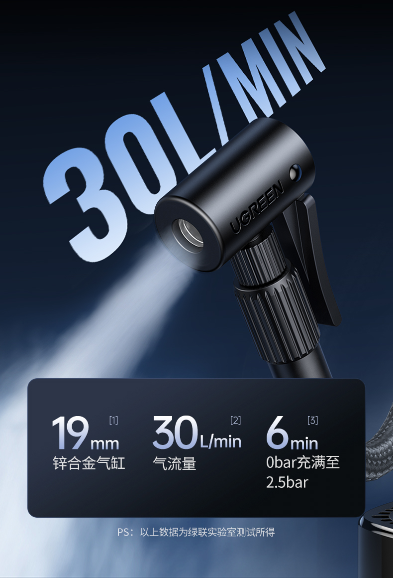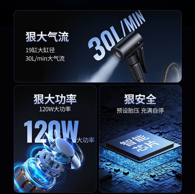 绿联车载充气泵电动打气筒打气泵汽车用测轮胎压自行车有线充气宝