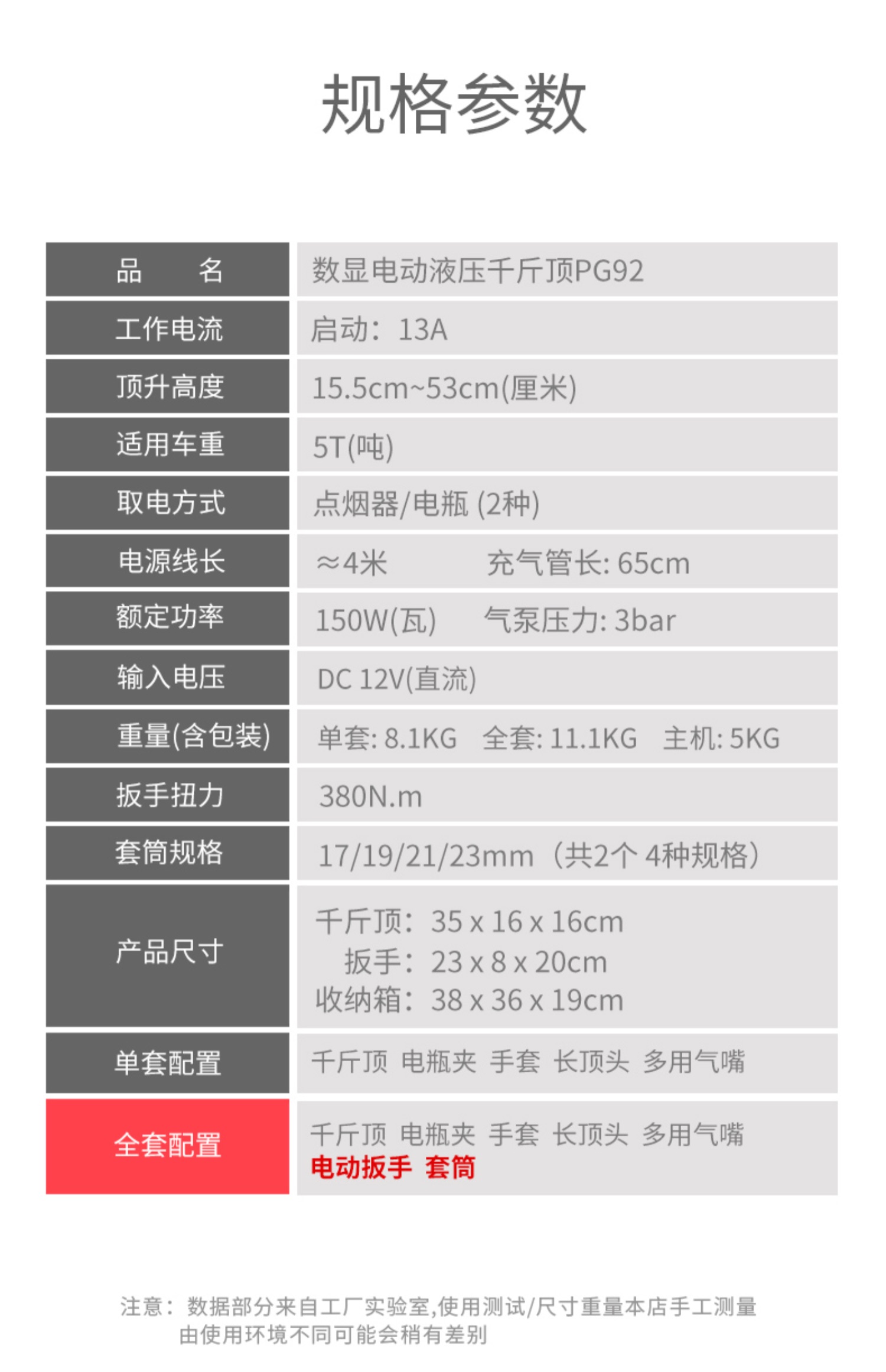 多用途 汽车电动液压千斤顶12v充气泵车用suv越野商务换胎工具5吨