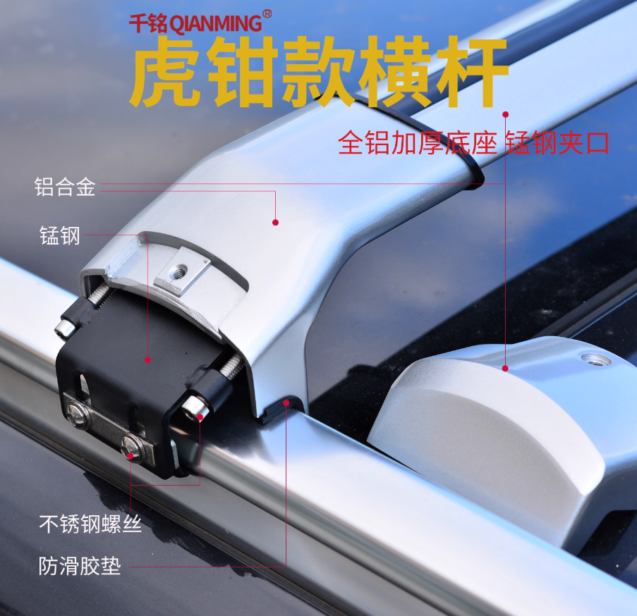 千铭加厚全铝合金车顶横杆行李架超低虎钳车载横杠架SUV承重力强