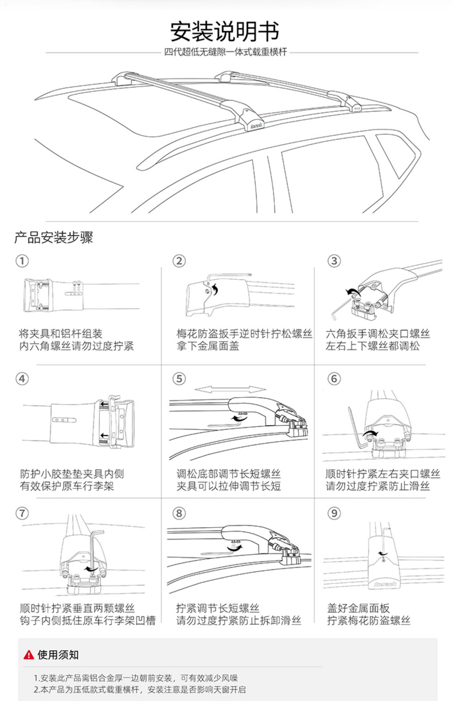 Atorack艾若克铝合金车顶行李架横杆一体式超低趴承重静音车顶架