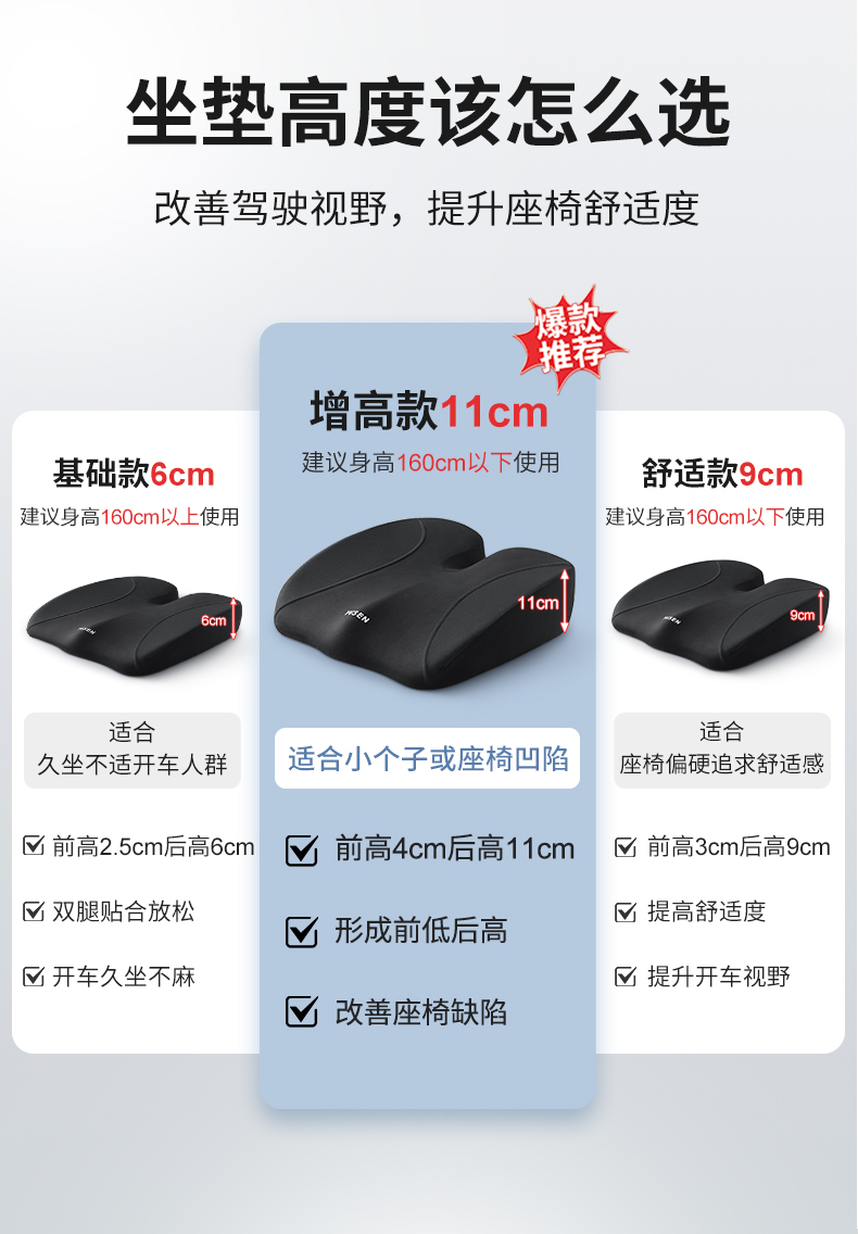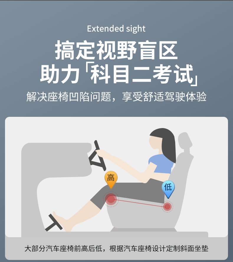 汽车增高坐垫 斜面专用学车驾照女座垫 主驾驶座椅加厚屁屁垫加高